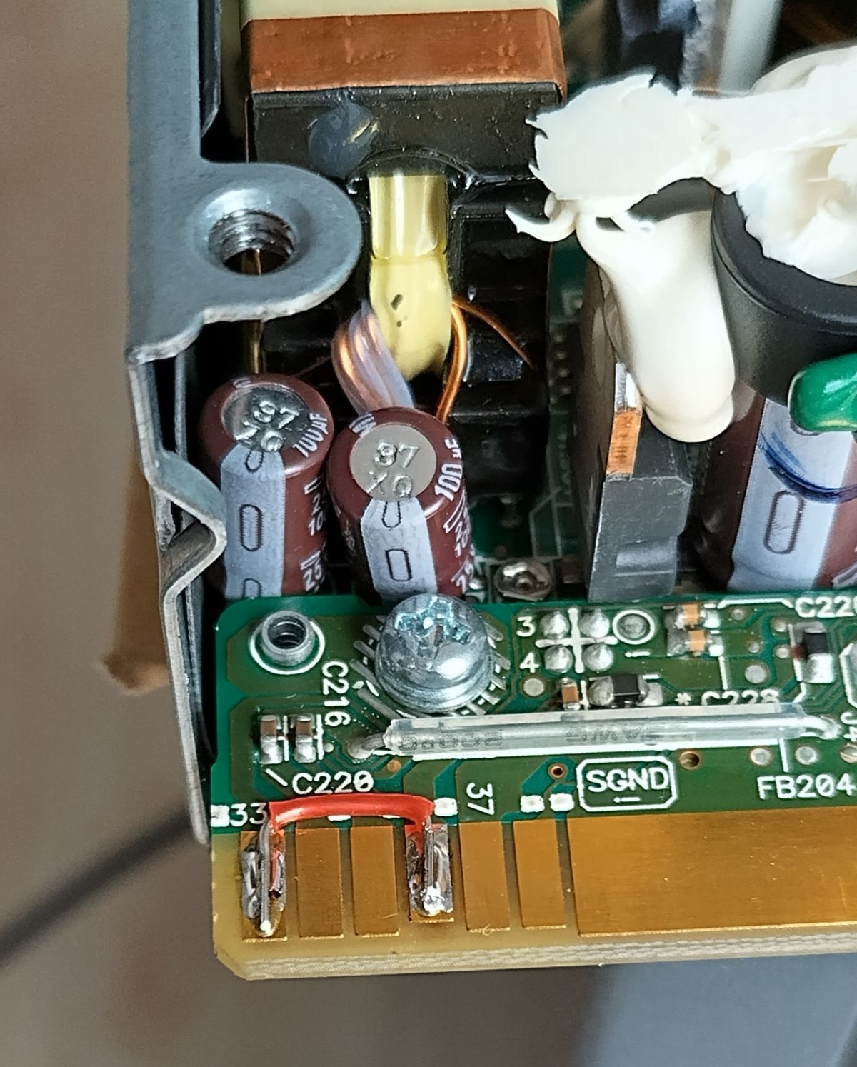 Es ist aber möglich, die Isolierfolie wieder in Originalposition zu bringen und die kleinen seitlichen Öfnungen, die bereits herstellerseitig vorgesehen sind, für die Einstellung der Spannung zu nützen.