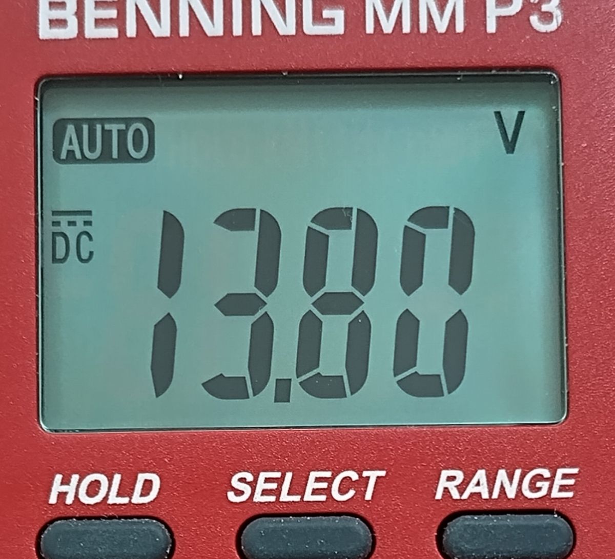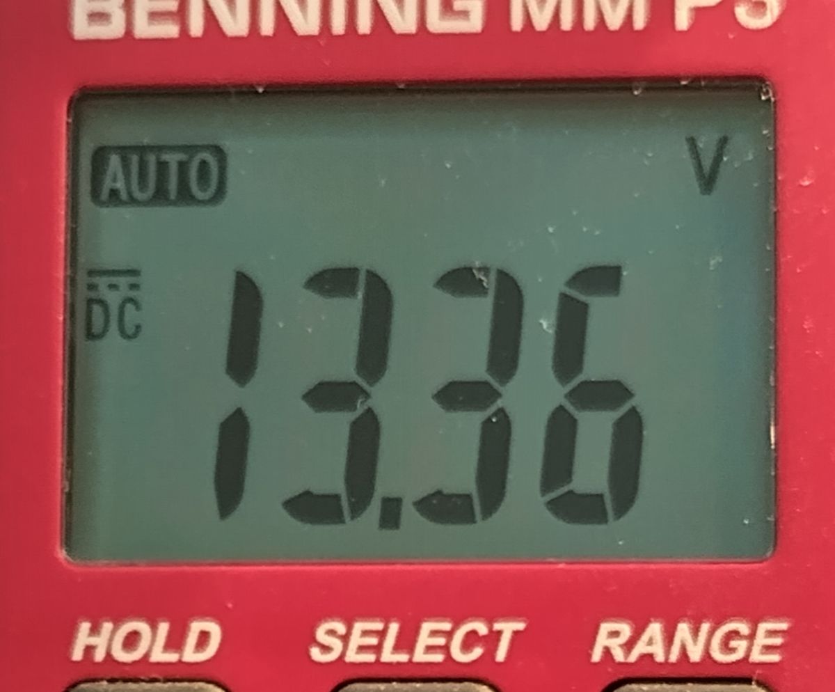 Bei mir waren es auf Anhieb 13,68 Volt.