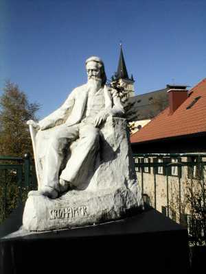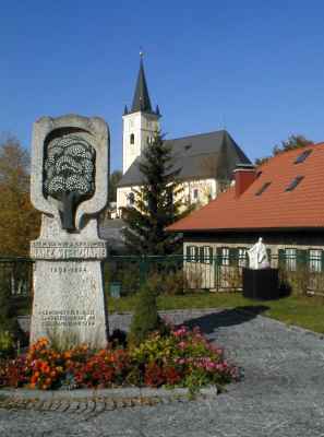 ![]() Stelzhamerdenkmal mit Wohnhaus und Pfarrkirche |